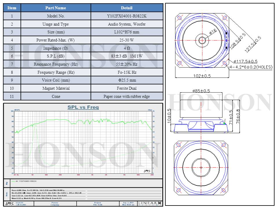 5.5寸/4Ω/25W/注塑盆/低音