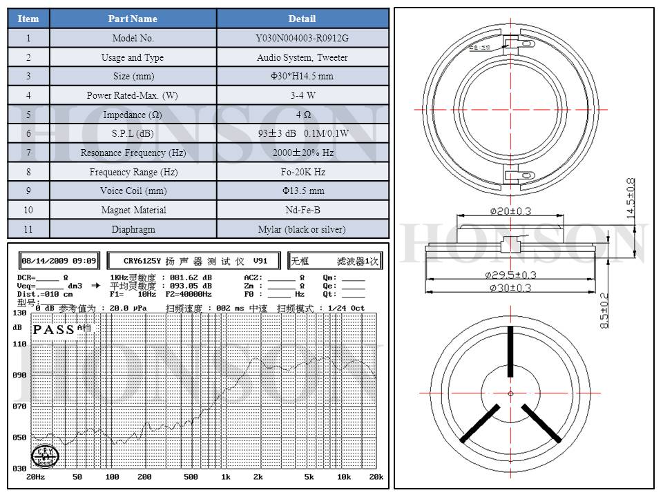 Φ30mm/8Ω/10W/Silk/Tweeter