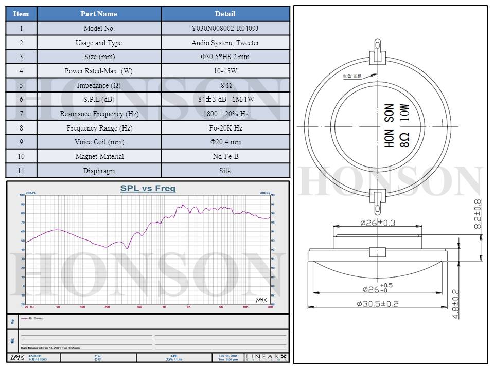 Φ30mm/4Ω/3W/Mylar/Tweeter