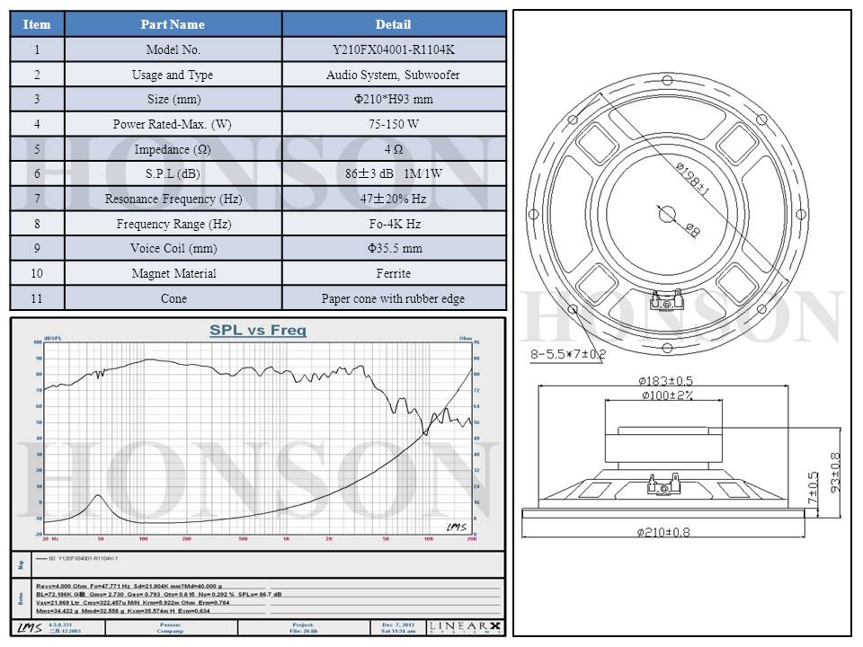 8.0 Inch/8Ω/40W/Woofer