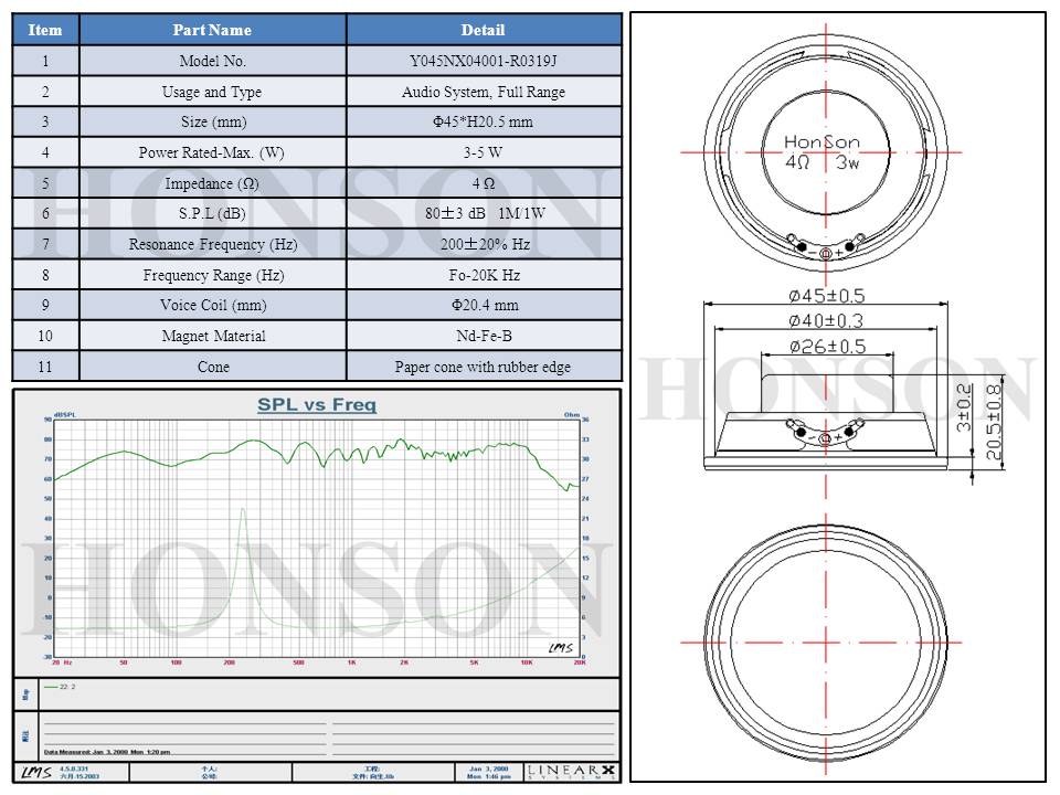 Φ40mm/4Ω/3W/Full Range