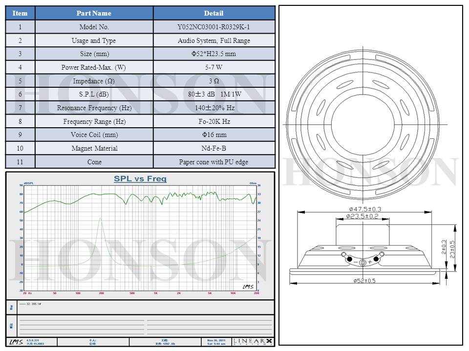 Φ52mm/4Ω/3W/Full Range
