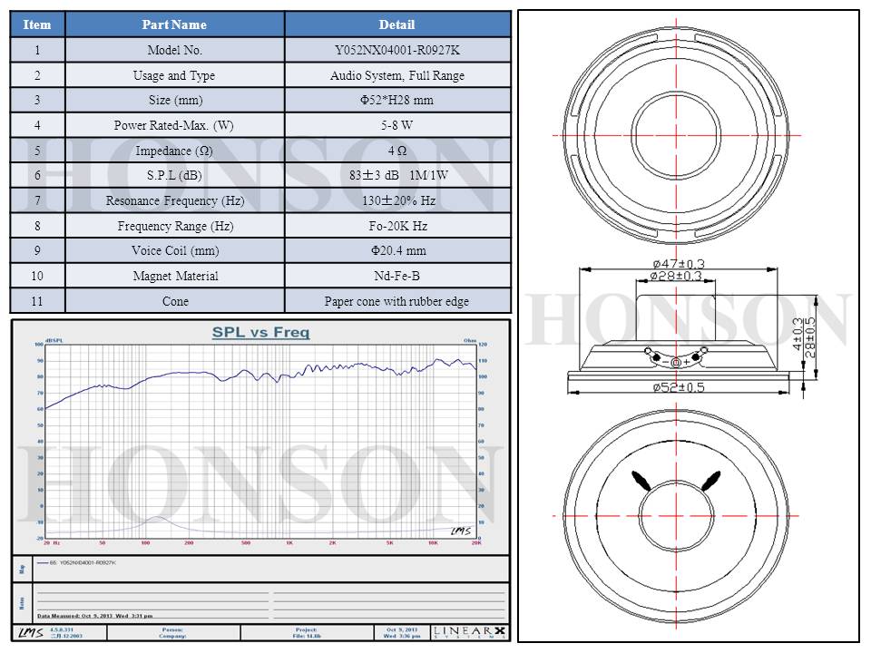 Φ52mm/4Ω/3W/Full Range