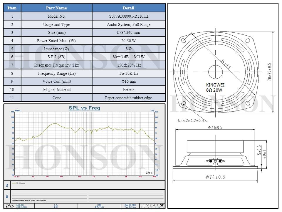 Φ78mm/4Ω/10W/Full Range