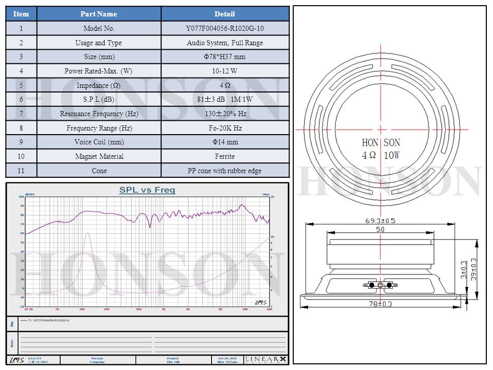 L78mm/4Ω/10W/Full Range
