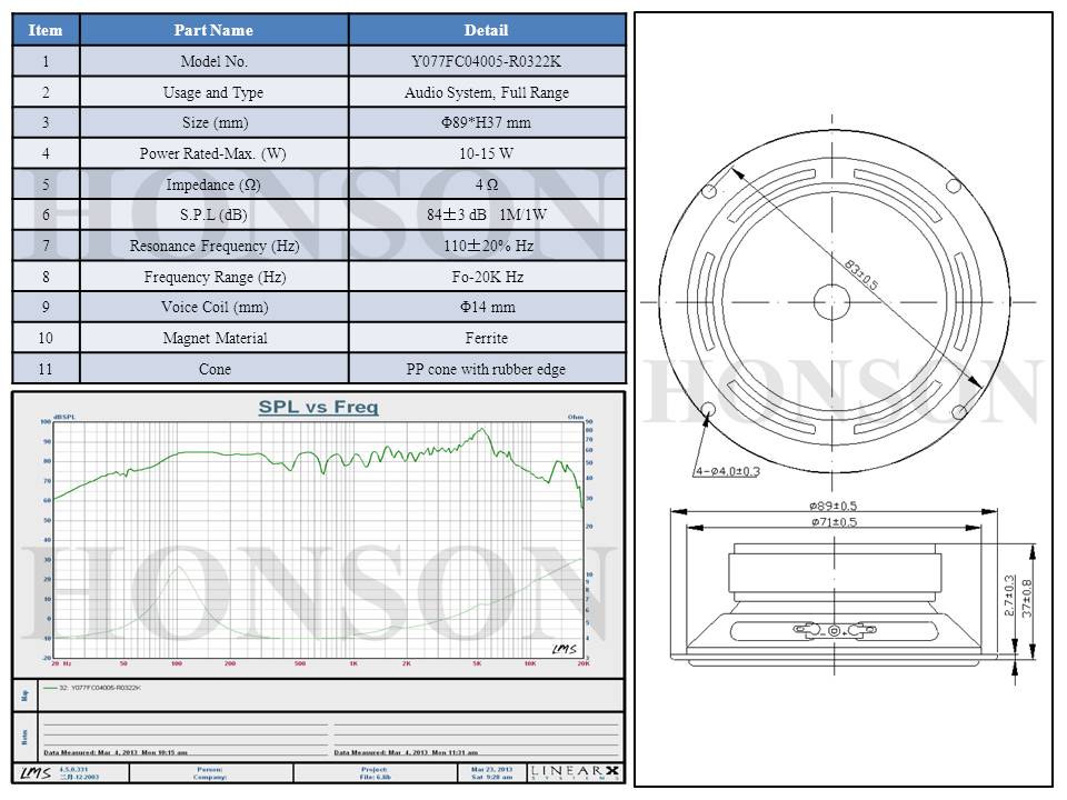 Φ89mm/4Ω/10W/Full Range