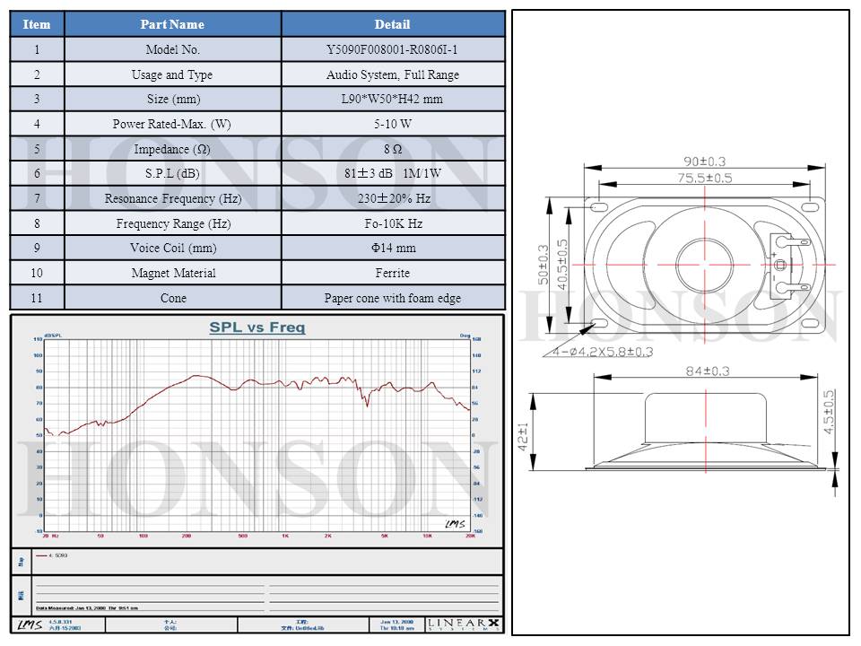 L58*W35mm/8Ω/3W/Full Range