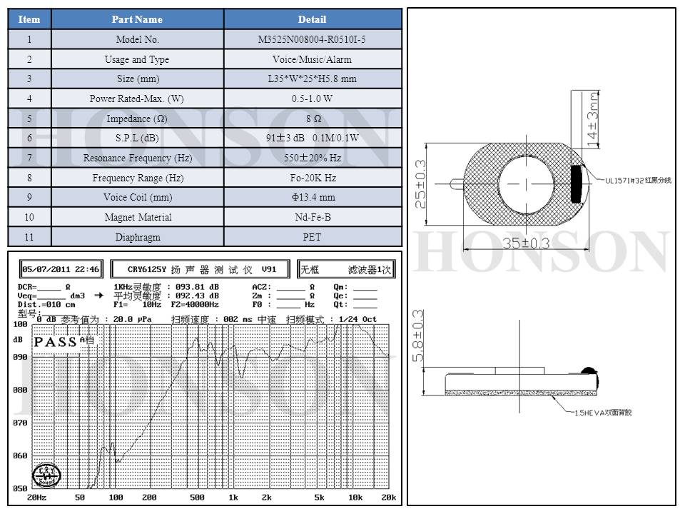 L35*W25mm/4Ω/1.5W/PET